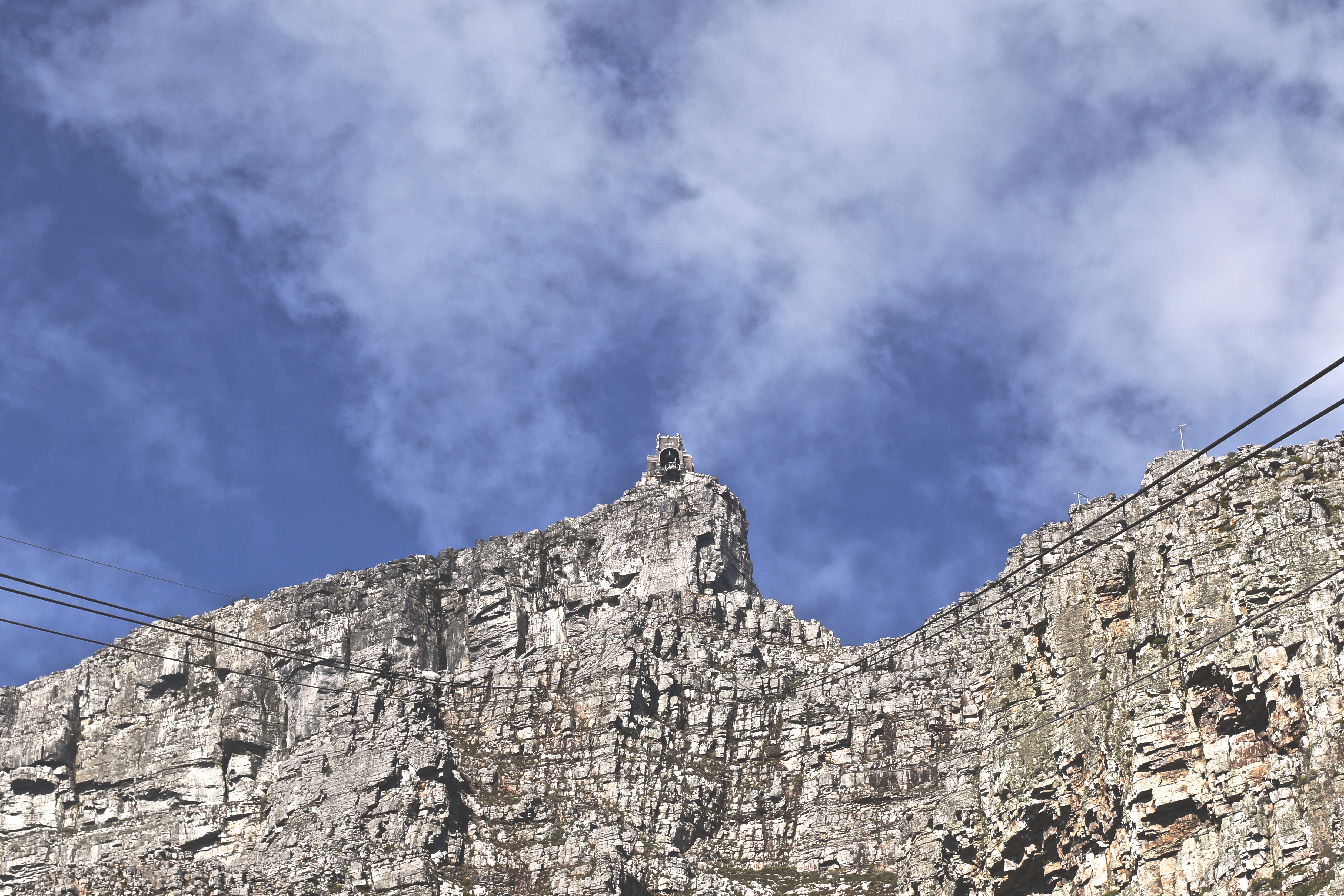 Zoals iedere taxichauffeur ons adviseert (en het een toerist in Zuid-Afrika betaamt) bezoeken we de Tafelberg. Ik kijk met bewondering naar het uitzicht, maar houd steevast een meter afstand van de halfhoge muurtjes die ons er van weerhouden de diepte in te storten. Voor velen moeten ze er toch uitnodigend uitgezien hebben – menig toerist liet zichzelf zittend op zo’n muurtje vereeuwigen, soms zelfs met de armen wijd gespreid. Bij iedere windvlaag hield ik mijn hart vast.
