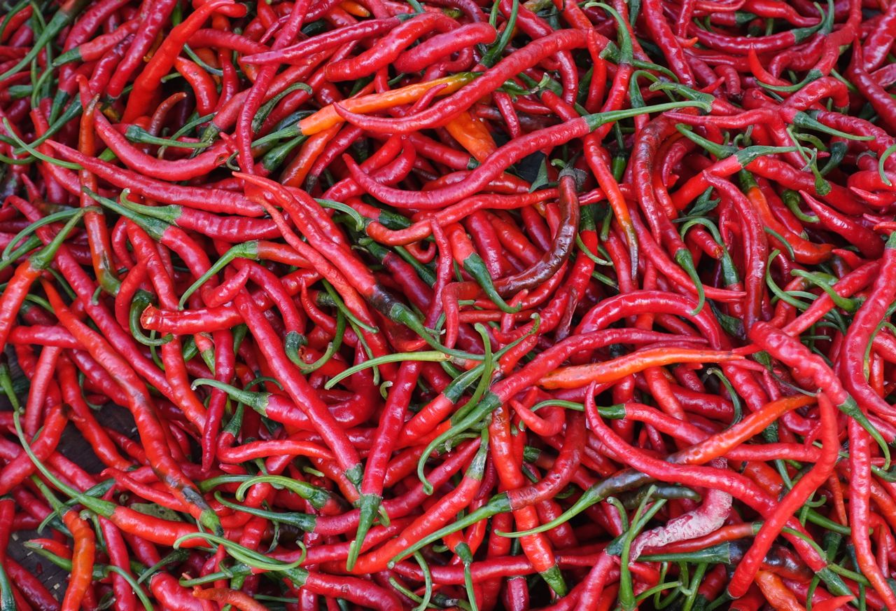 Zie je de pepers rechtsboven? Daar hoort nog een mooi verhaal bij. Bij het avondeten kreeg mijn vader er een paar op zijn bord. Hij dacht dat het edamameboontjes waren, maar kwam er al na één beet achter dat dit absoluut niet zo was. Ze waren echt extreem heet, zei hij. Mijn broer zou mijn broer niet zijn als hij dat zelf niet wilde proberen. Dapper at hij er één op en al snel constateerde hij dat ze inderdaad extreem heet waren. Hij slaakte verschillende kreten en zijn ogen begonnen te tranen. Nog een paar minuten was hij er een beetje van slag van. ‘Hoe kan het dat jij er niks meer van merkt?’ vroeg hij mijn vader, waarop die antwoordde: ‘Je denkt toch zeker niet dat ik het doorgeslikt heb?’