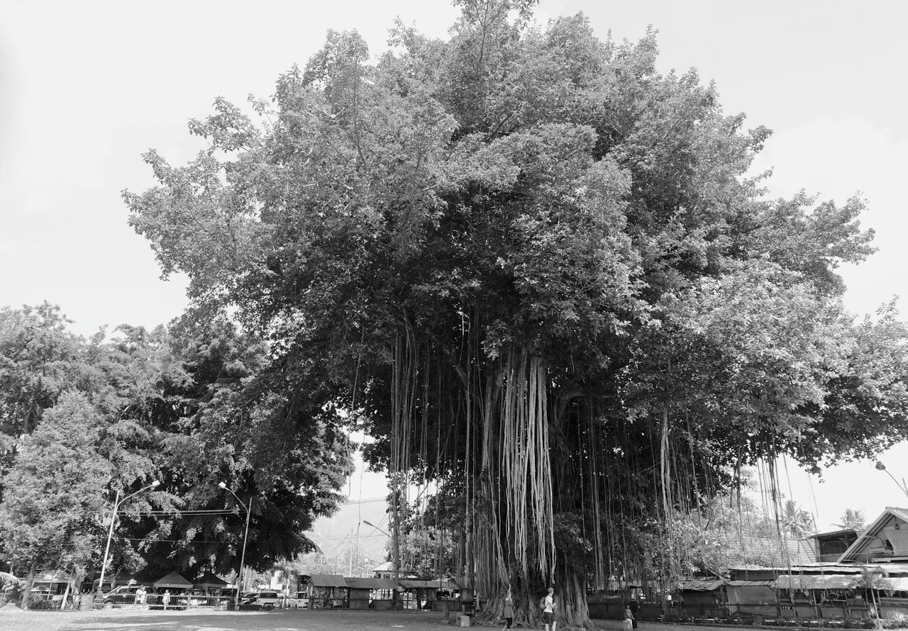 Deze boom groeit op en neer: eerst vanaf de wortels omhoog, vervolgens in slierten weer naar beneden. Als deze slierten bij de grond zijn, krijgen ze ook wortels en zo wordt de boom steeds dikker.