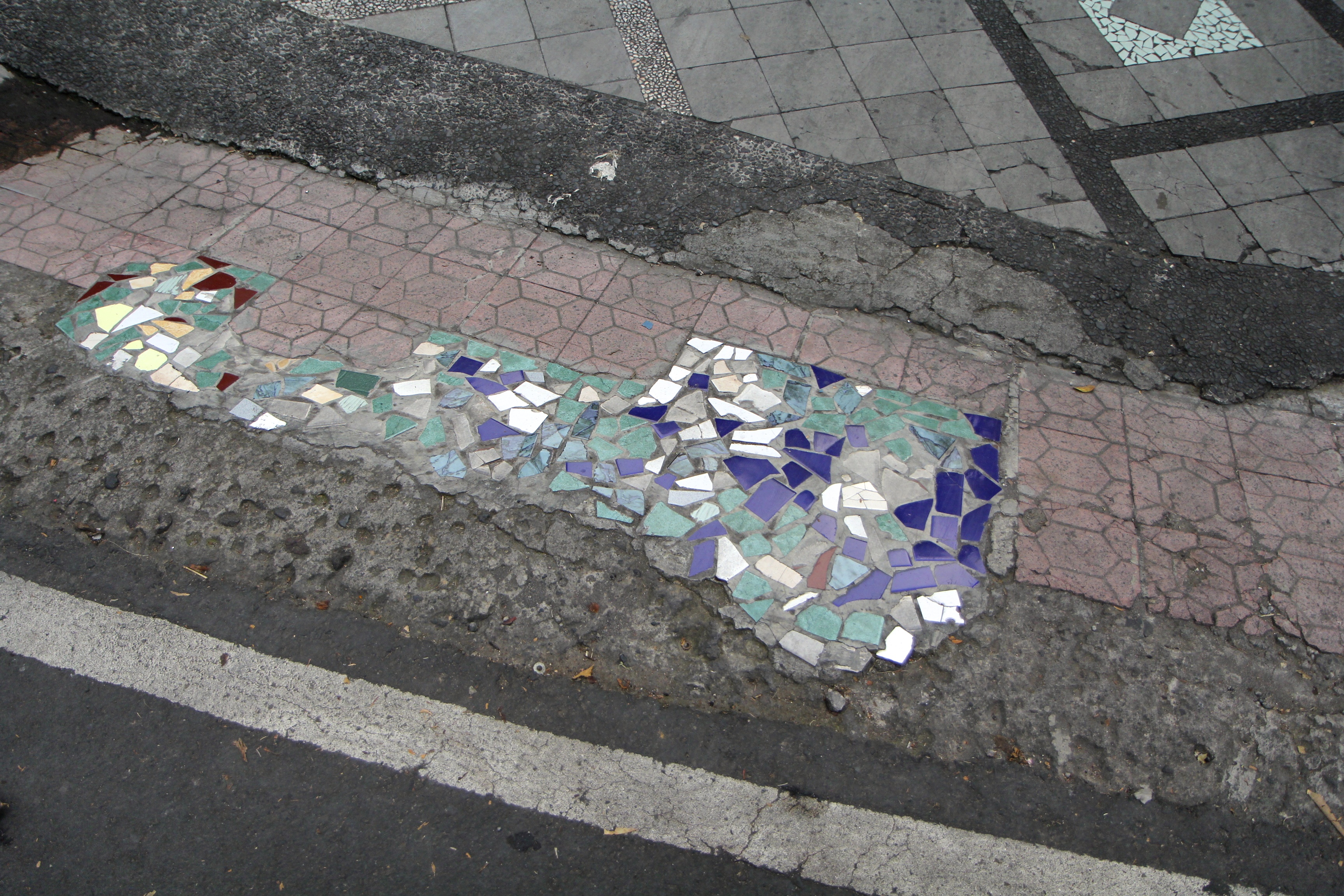 Stukje mozaïek op de stoep.